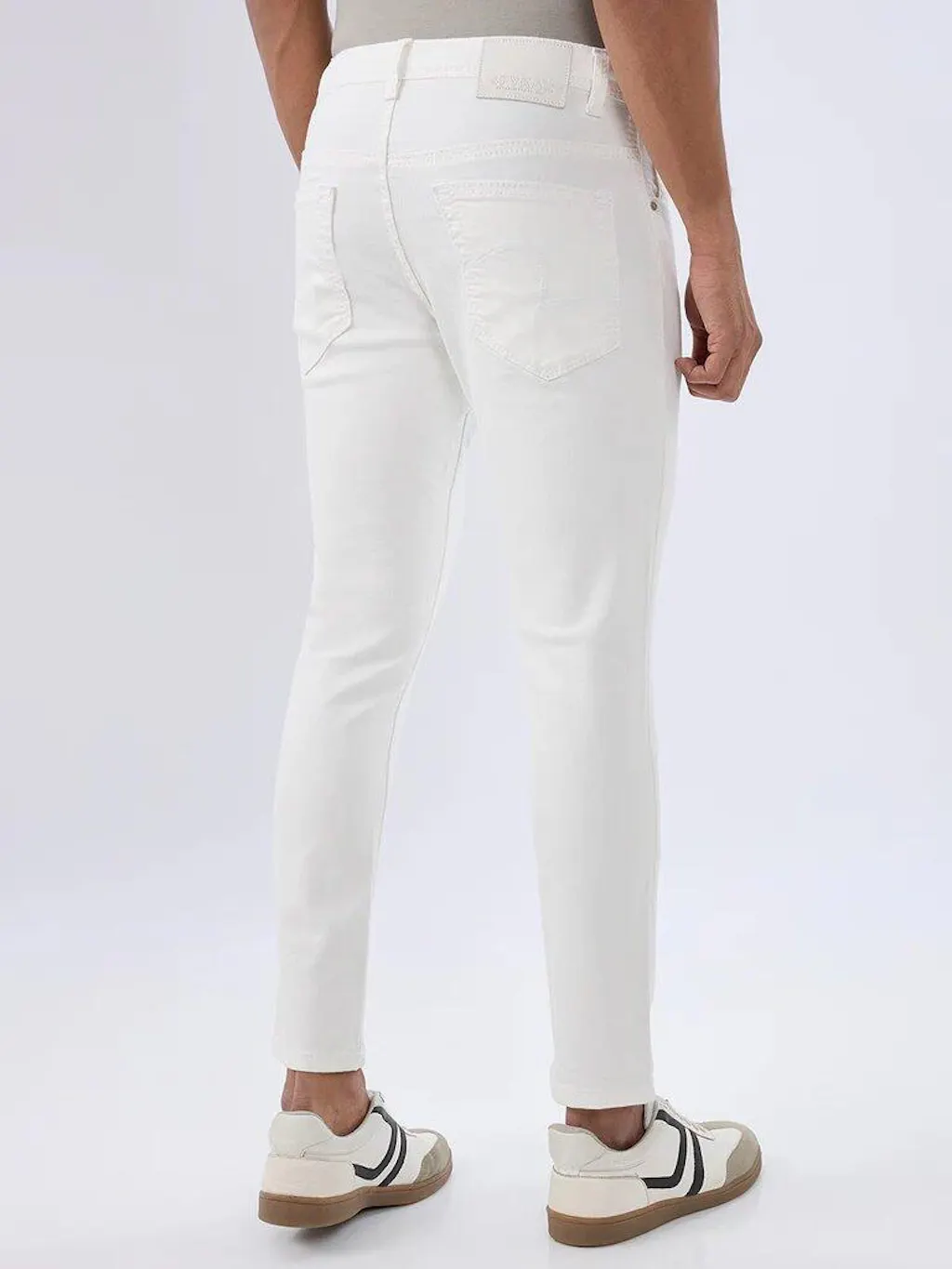 Men Jeans Slim Fit White Mid Rise